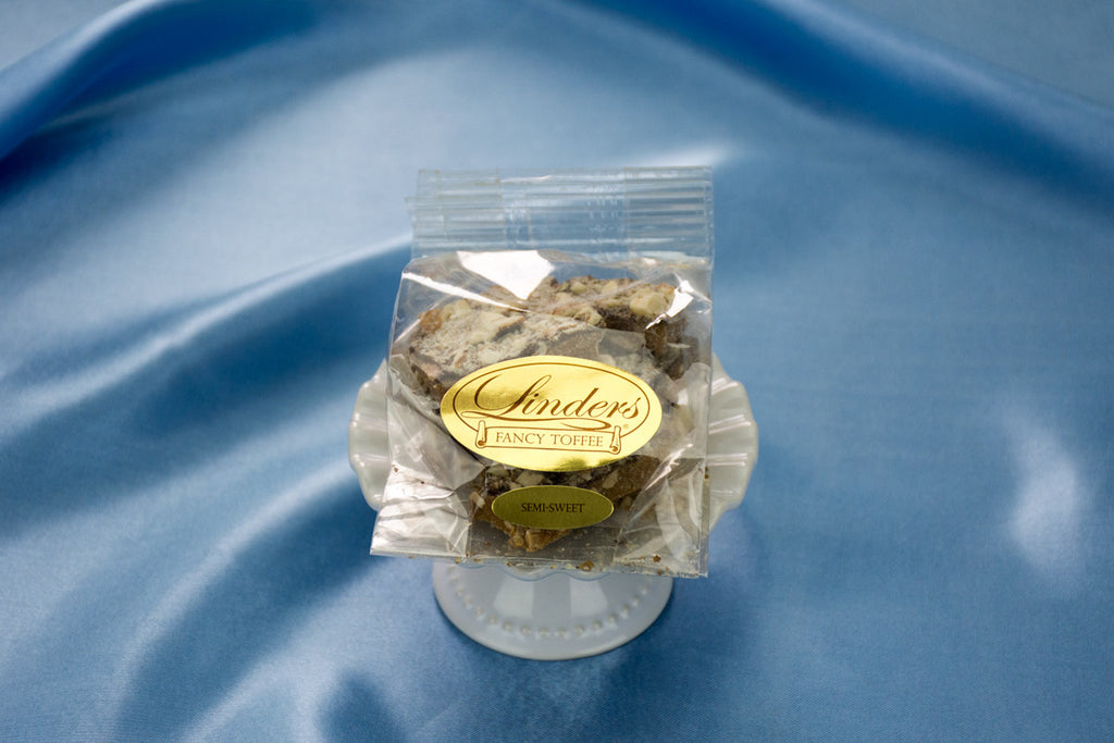 These 2 oz & 4 oz bags of the most exquisite toffee you've ever given are finally here! Keep a few of these around for those last minute gifts you need at the holidays! Delicious toffee, perfect for stocking stuffers, or spur of the moment gifts. You'll have a tough time giving it away, though.
