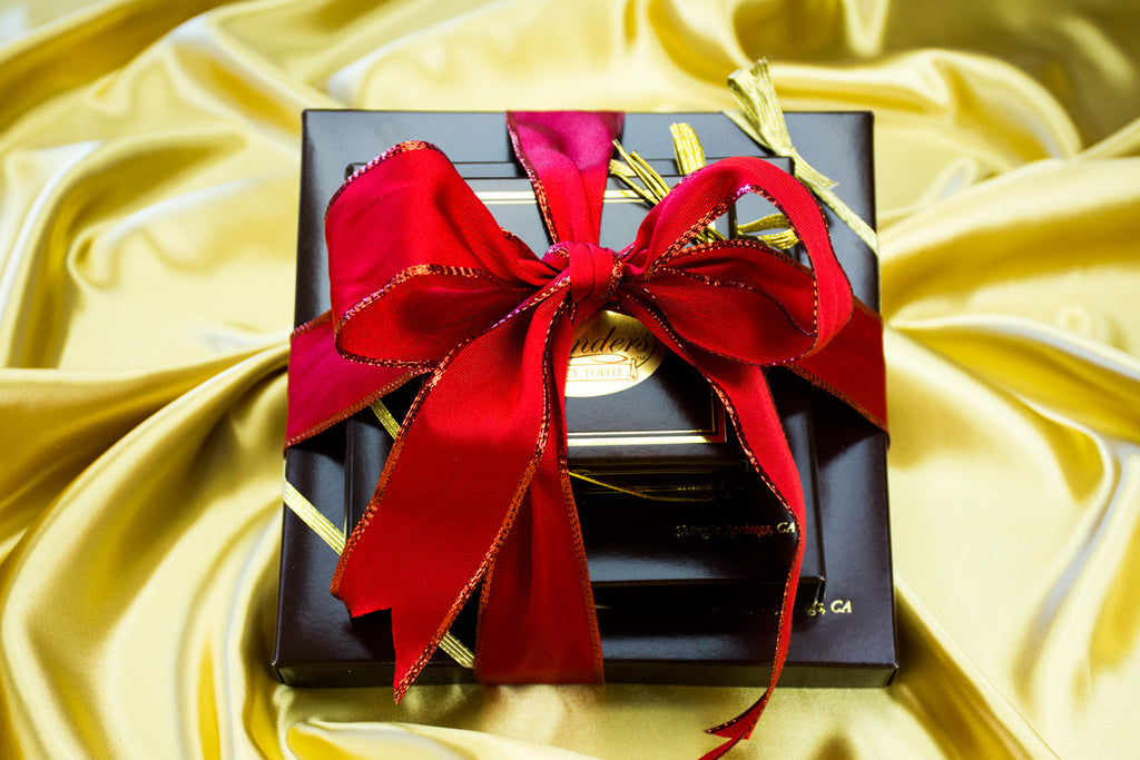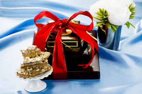 These beautifully presented gift boxes are stacked, filled with exceptionally delicious Linders Fancy Toffee, in your choice of Flavours, and finished with a red satin ribbon. Linders Fancy Toffee Tower includes: 1 Large box, 1 Small box and Gold Mini Box.