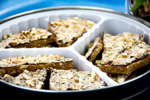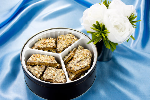 As one of Linders Fancy Toffee's Signature treats, the Semi-Sweet Fancy Toffee Tin is a heavenly combination of roasted, lightly salted jumbo Californian Almonds, smothered in a generous top layer of handmade semi-sweet chocolate.
